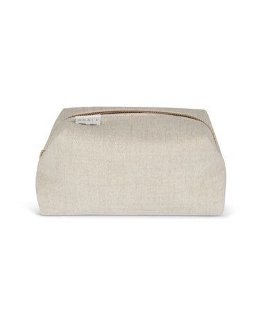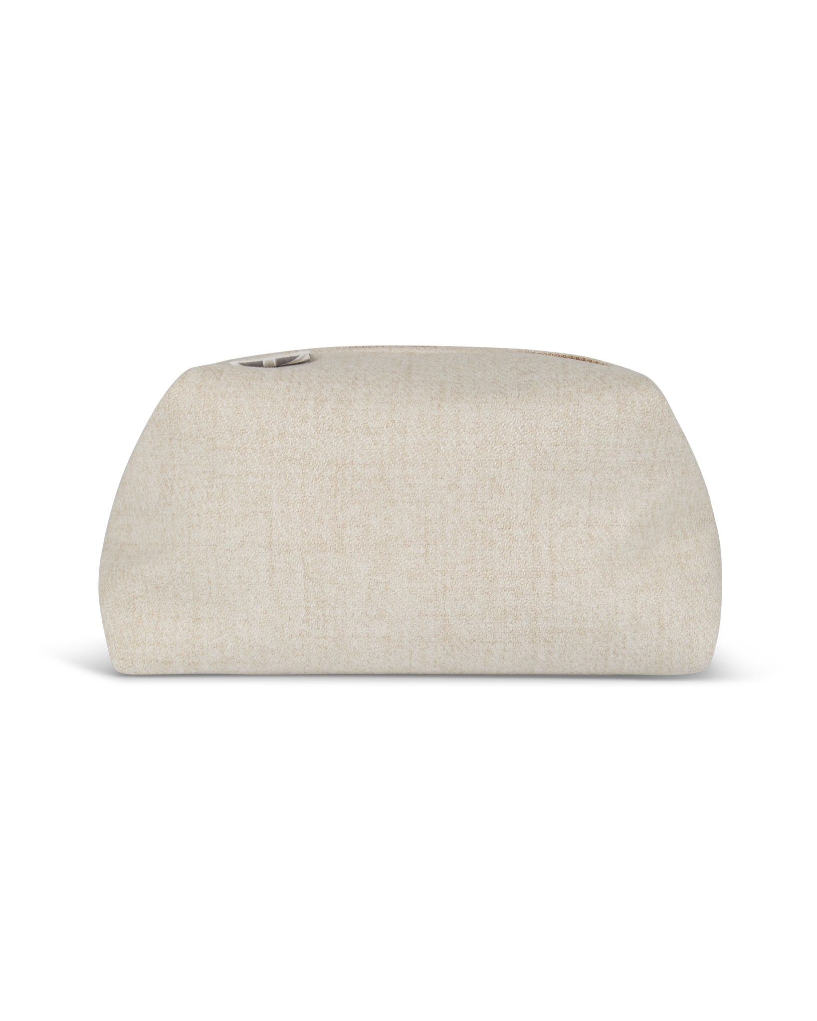 Our box bag in brushed oyster is a soft brushed faux wool effect. Finished with a gold zip and pleather lining making it a great large make up bag or wash bag that is easy to wipe clean.