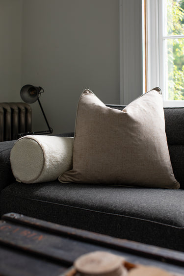 Frank in oatmeal is a soft, brushed, faux wool effect, with self edging. A great addition to any decor and designed for all types of interiors. Concealed with a discrete zip fastening allowing easy cleaning. Filled with a feather pad making it the perfect plump and comfortable addition to any room.