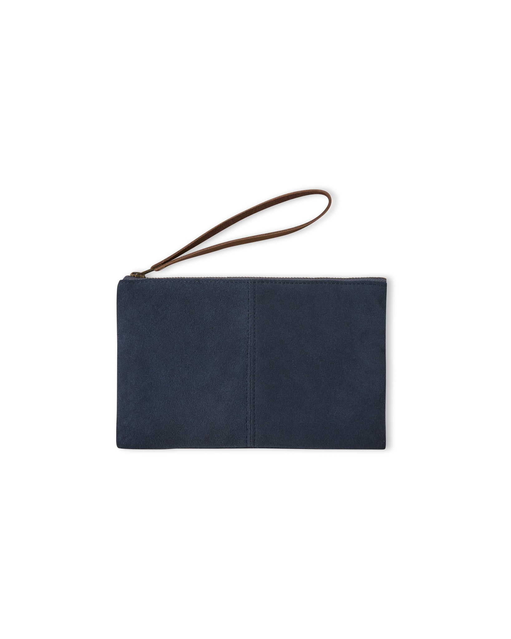 The Kensington Pouch Bag is a sleek, compact accessory with subtle seam detailing and a convenient wrist strap. Perfect for storing your essentials inside a larger bag or carrying on its own for a stylish pouch. Made from 100% Suede.