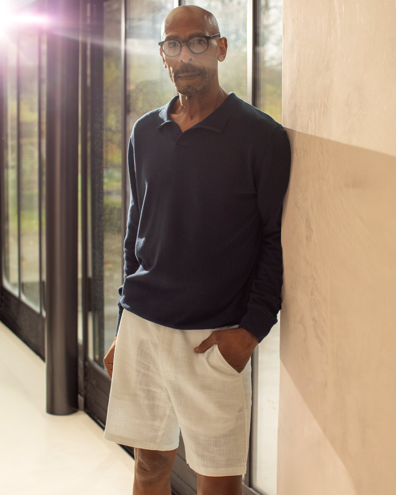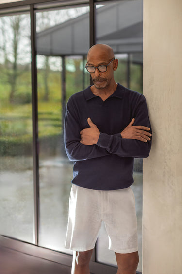A regular-length short crafted from a breathable linen and cotton blend, designed with side pockets and finished with a classic button and zip fly, offering a timeless, easy-wear silhouette.
